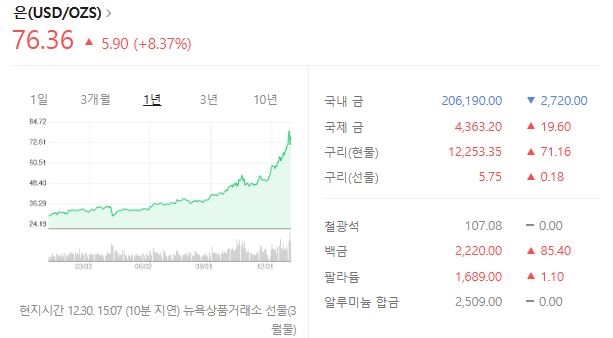 최근 1년 사이 은 가격 추이=네이버 시세 갈무리