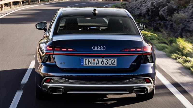 신형 A6는 스포츠카처럼 낮고 날렵한 실루엣과 함께, 공기저항계수 0.23Cd라는 수치를 기록했다. 이는 아우디 내연기관 양산차 역사상 가장 낮은 수치로, 싱글프레임 그릴, 슬림 헤드램프, 3차원 에어 커튼 등 세밀한 설계가 적용됐다. 후면부는 정밀한 그래픽의 슬림 테일램프와 라이트 스트립이 차체의 넓은 감각을 강조한다.