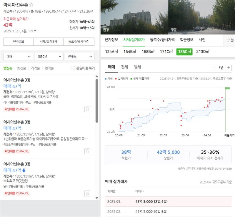 KB시세 기준 43억 7,500만원의 서울 송파구 잠실동의 랜드마크 아파트인 아시아선수촌아파트 151㎡(약 46평형) 가 근저당 담보 채권 발행을 요청하며 시장의 관심을 집중시키고 있다. 1986년 서울아시안게임 선수촌으로 건립된 이 단지는 18개동 1,356세대 규모의 대단지로, 최근 재건축 추진과 함께 강남권 핵심 입지, 한강 조망권, 우수한 학군 등이 결합되며 실거주와 투자 수요를 동시에 확보하고 있다. 2024년 12월 기준 151㎡ 매매가 42억 4,000만원, 2025년 4월 현재 151㎡ KB시세 43억 7,500만원을 기록하는 등 대형 평형 중심의 안정적인 가격 상승세가 이어지고 있으며, 2024년 7월 178㎡ 49억원 거래 사례는 단지의 프리미엄을 입증했다.
